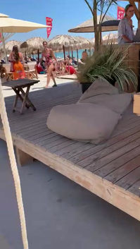 Beach services: The cliff seafood and Mediterranean restaurant. Sunbeds, poufs and other pampering equipment.