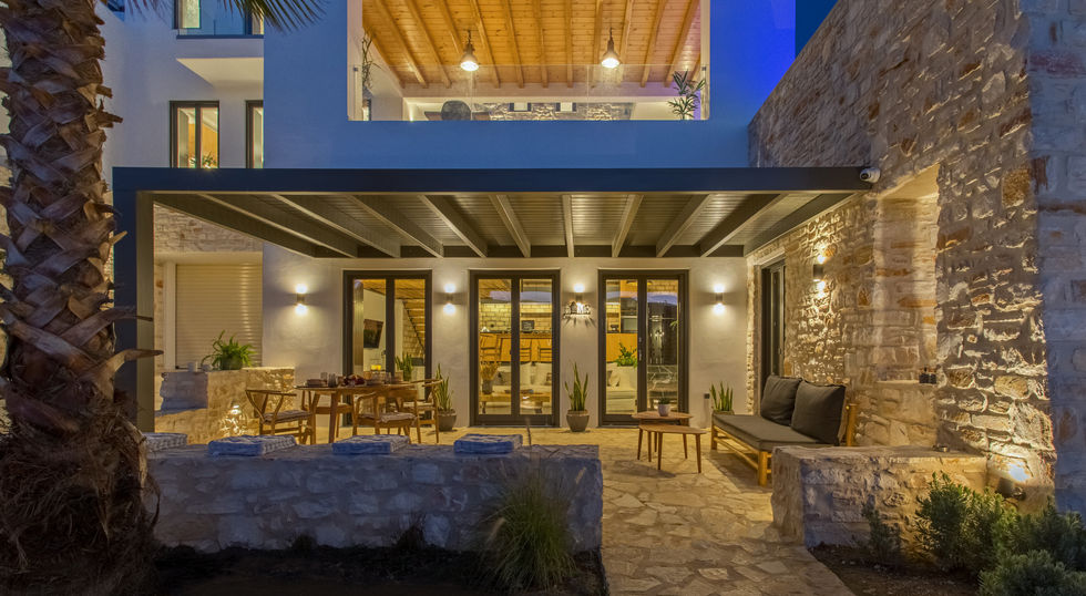 The outdoor areas are designed for effortless island living, featuring an infinity pool and multiple terraces ideal for relaxing or dining together. With generous space for large gatherings and uninterrupted views of the Aegean Sea, the villa offers privacy, comfort, and unforgettable outdoor moments.